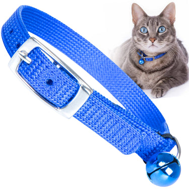 About Jeffers Adjustable Nylon Cat Collar with Bell – Stretch Safety Section, 3/8" Wide, Fits Kittens & Cats, Compatible with GPS Tracker, Airtag, Name Tag – Indoor Outdoor Pet Collars - Solid Blue from Jeffers